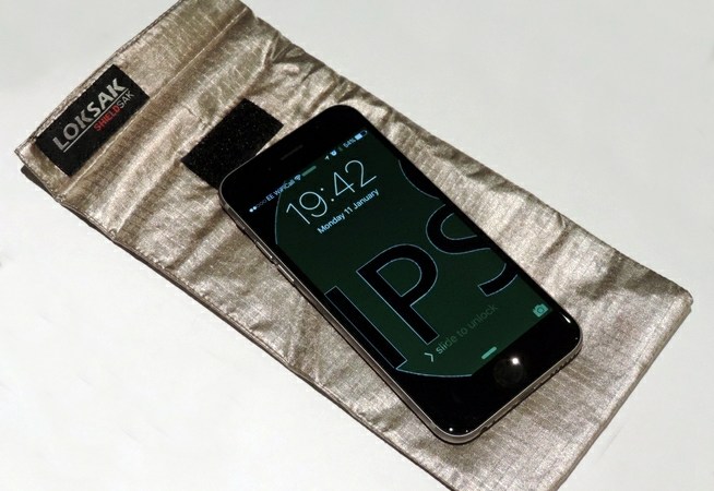 The ShieldSak is a “Faraday Cage” made into a lightweight fabric bag which is woven from several types of metal with a Velcro closure that simply blocks all electronic signals and radio transmissions from reaching data transponders, so that any active mobile phone will completely disappear off the grid with 5-10 seconds after being sealed within a ShieldSak. It won’t ring, and it can’t be tracked. Additionally, any item fitted with an RFID chip, such as passports, Credit Cards, ID cards cannot be tracked, or remotely scanned once inside the ShieldSak.
