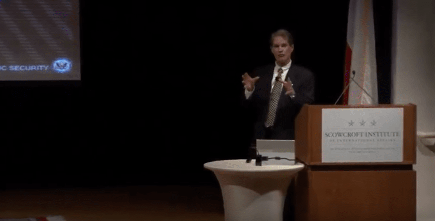 Booth, a former “spy hunter,” discussed the meaning of counterintelligence and counterespionage, including economic espionage versus military and diplomatic espionage. He also assessed the threats spies pose to national security from the State Department’s perspective. The talk was based on his own experiences from two State Department espionage cases involving Felix Bloch and Kendall Myers and their impact on U.S. national security.