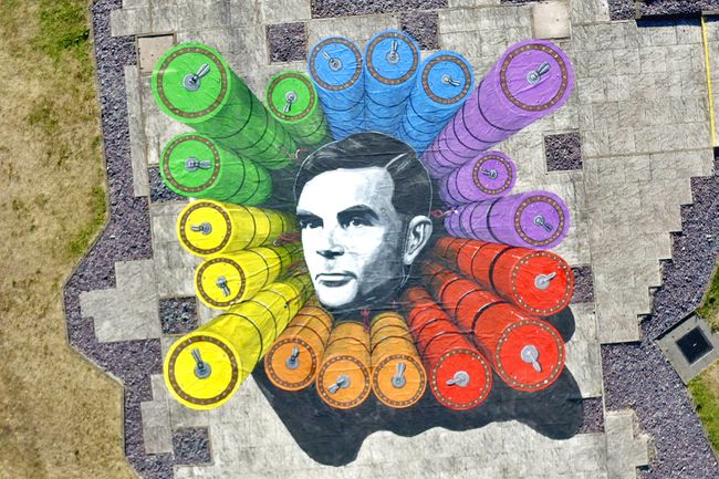 Today we (GCHQ) unveiled a giant LGBT+-inspired artwork of Alan Turing in the middle of our Cheltenham HQ, celebrating his legacy and becoming the first gay man to appear on a UK banknote.